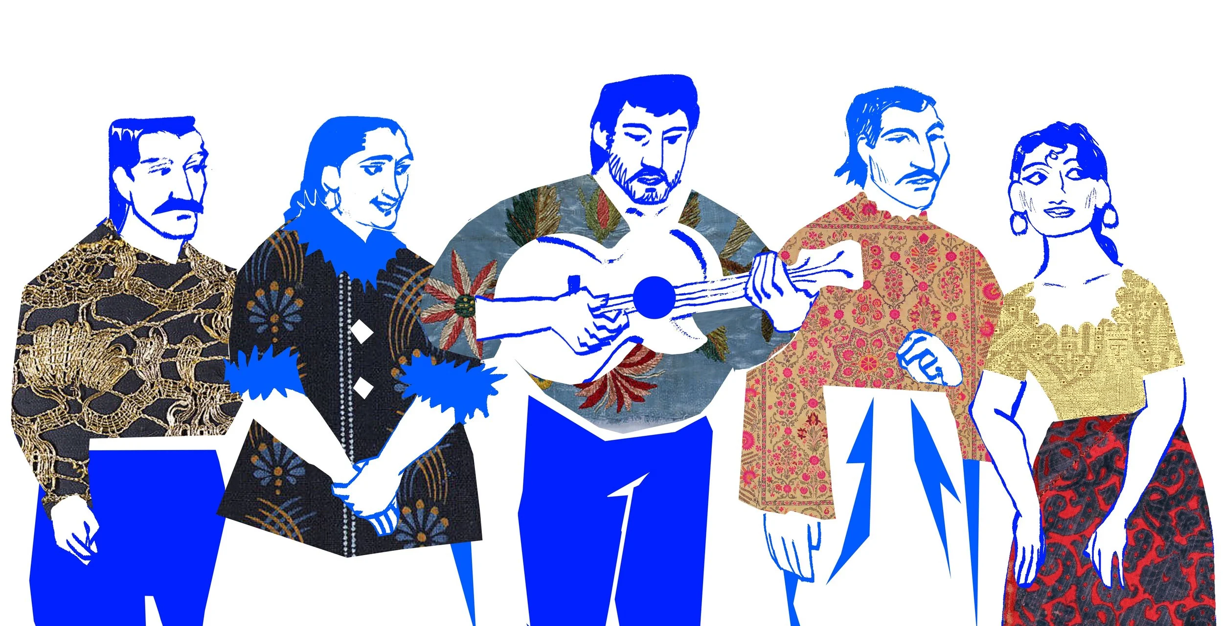 Illustration of one lineup of a music group I really enjoy, Ando Drom. They are a Roma-Hungarian group making beautiful Romani folk music inspired works.
